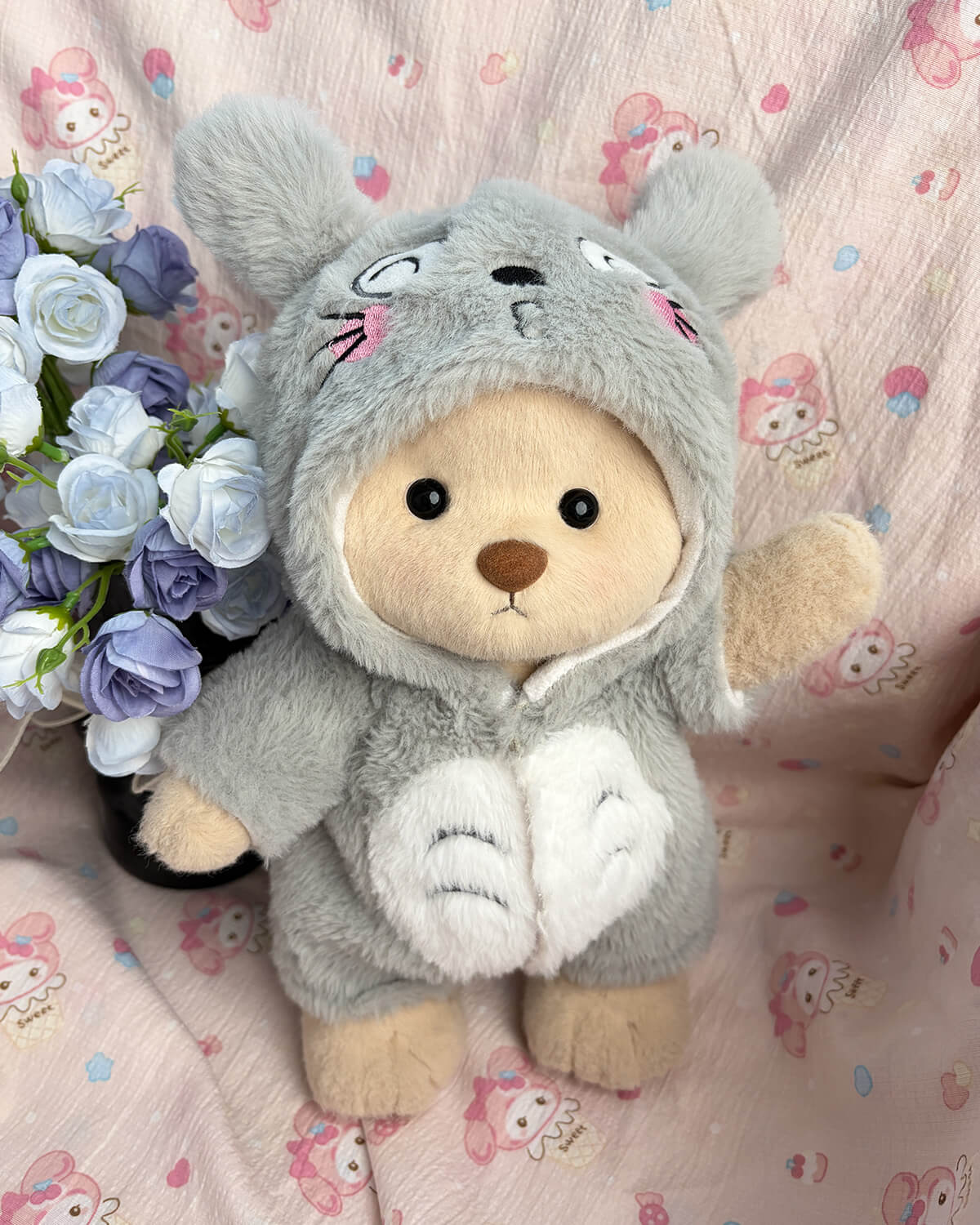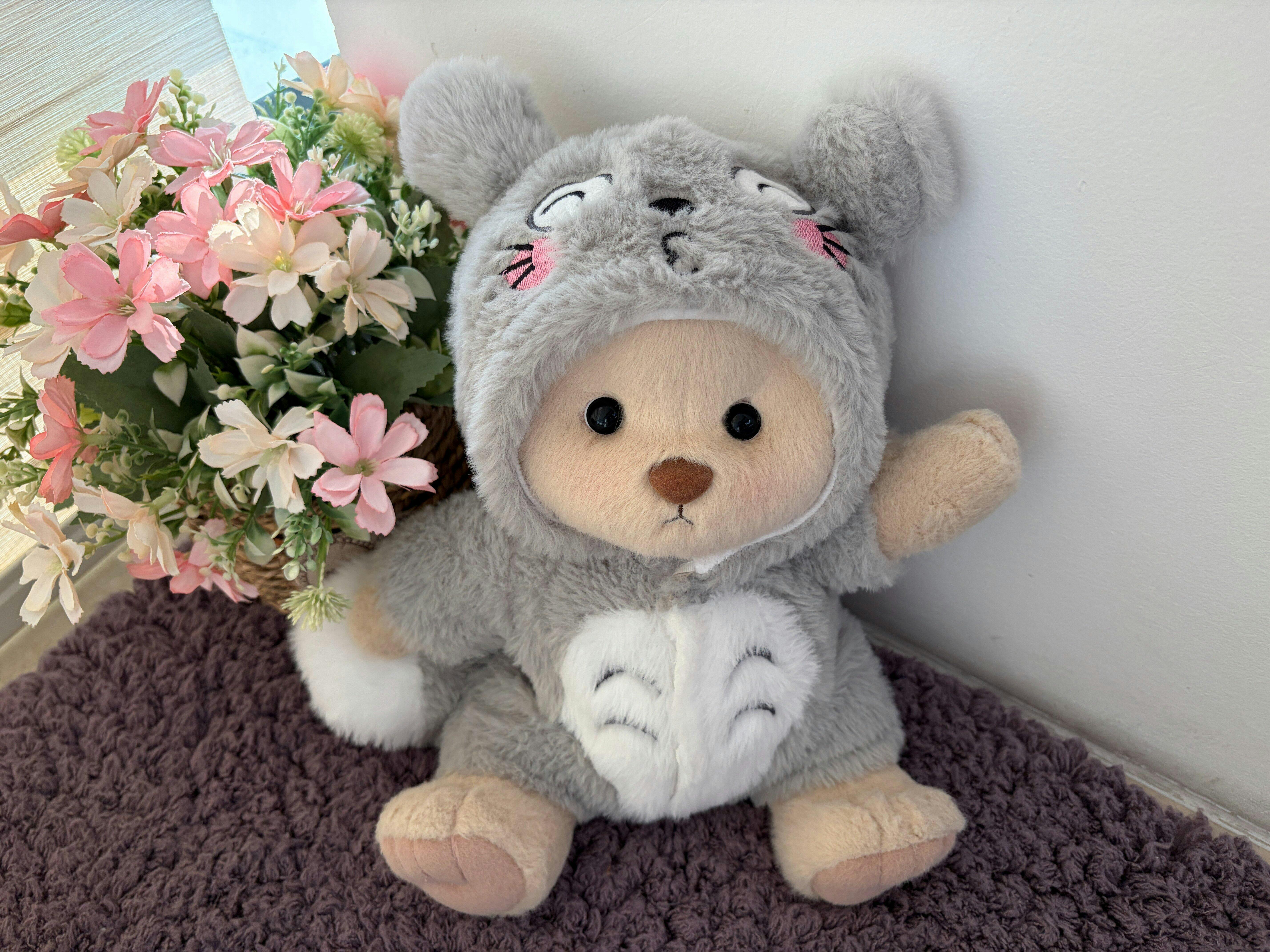Wrap your bear in this soft gray Totoro onesie, perfect for snuggles and imaginative adventures. Envision your bear nestled in a cozy nook, sharing stories with woodland friends!