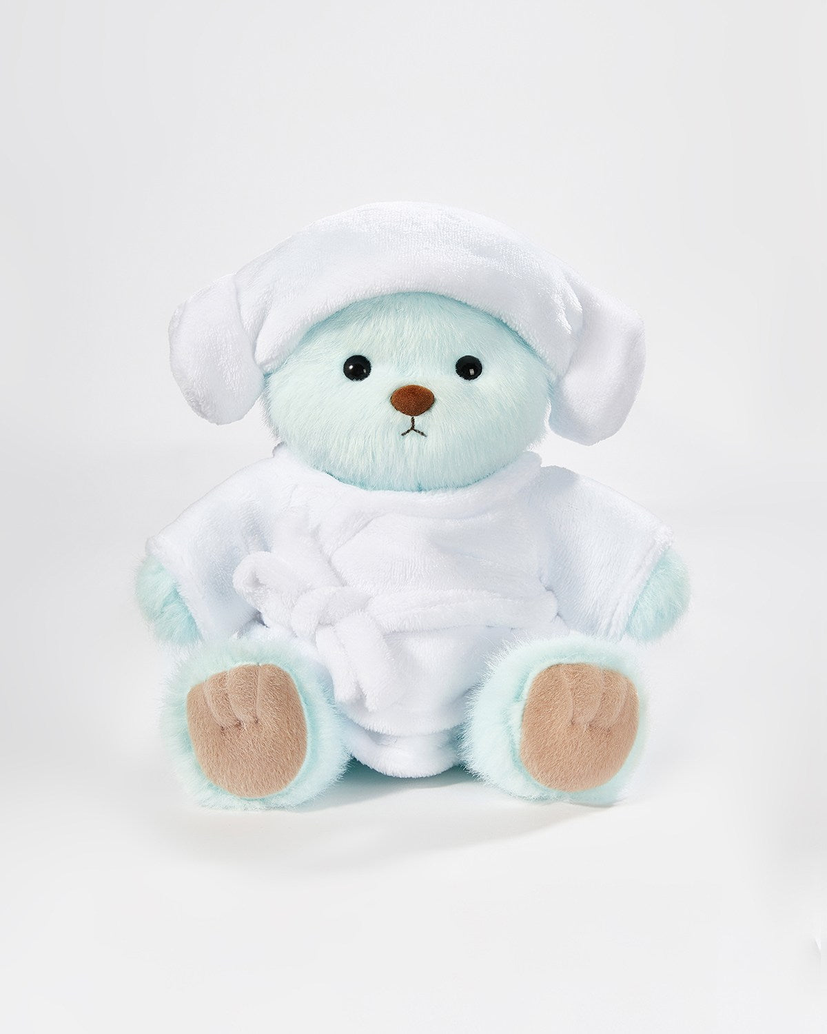 Mint Blue Long Hair Bear & White Bathrobe Set - 12 Inches