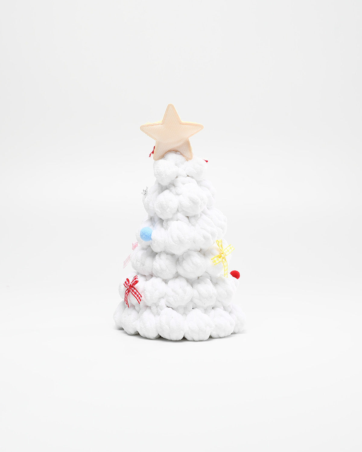 Introducing our adorable handmade Christmas tree, featuring a fluffy design adorned with colorful pom-poms and topped with a golden star. This unique piece is perfect for adding whimsical holiday cheer to your decor!Introducing our adorable handmade Christmas tree, featuring a fluffy design adorned with colorful pom-poms and topped with a golden star. This unique piece is perfect for adding whimsical holiday cheer to your decor!