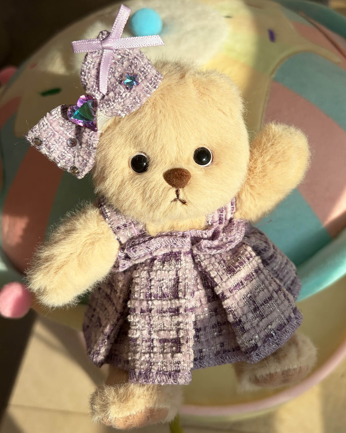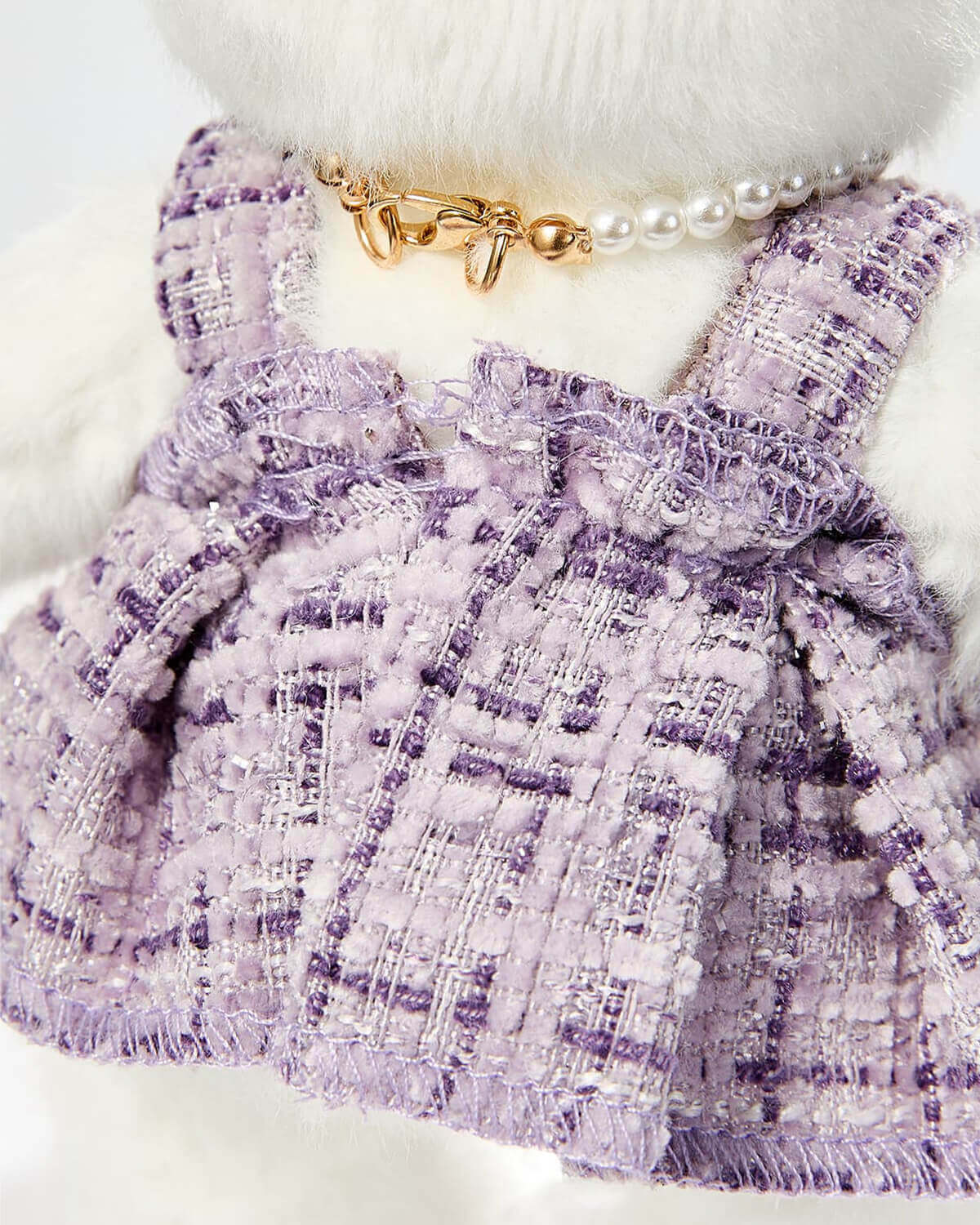 Make your plush toy stand out with our Purple Elegant Dress Set! This charming ensemble features a lavender dress with a pearl necklace, perfect for creating a noble look. The heart-shaped diamond bow and tailored design ensure exquisite detail from every angle.