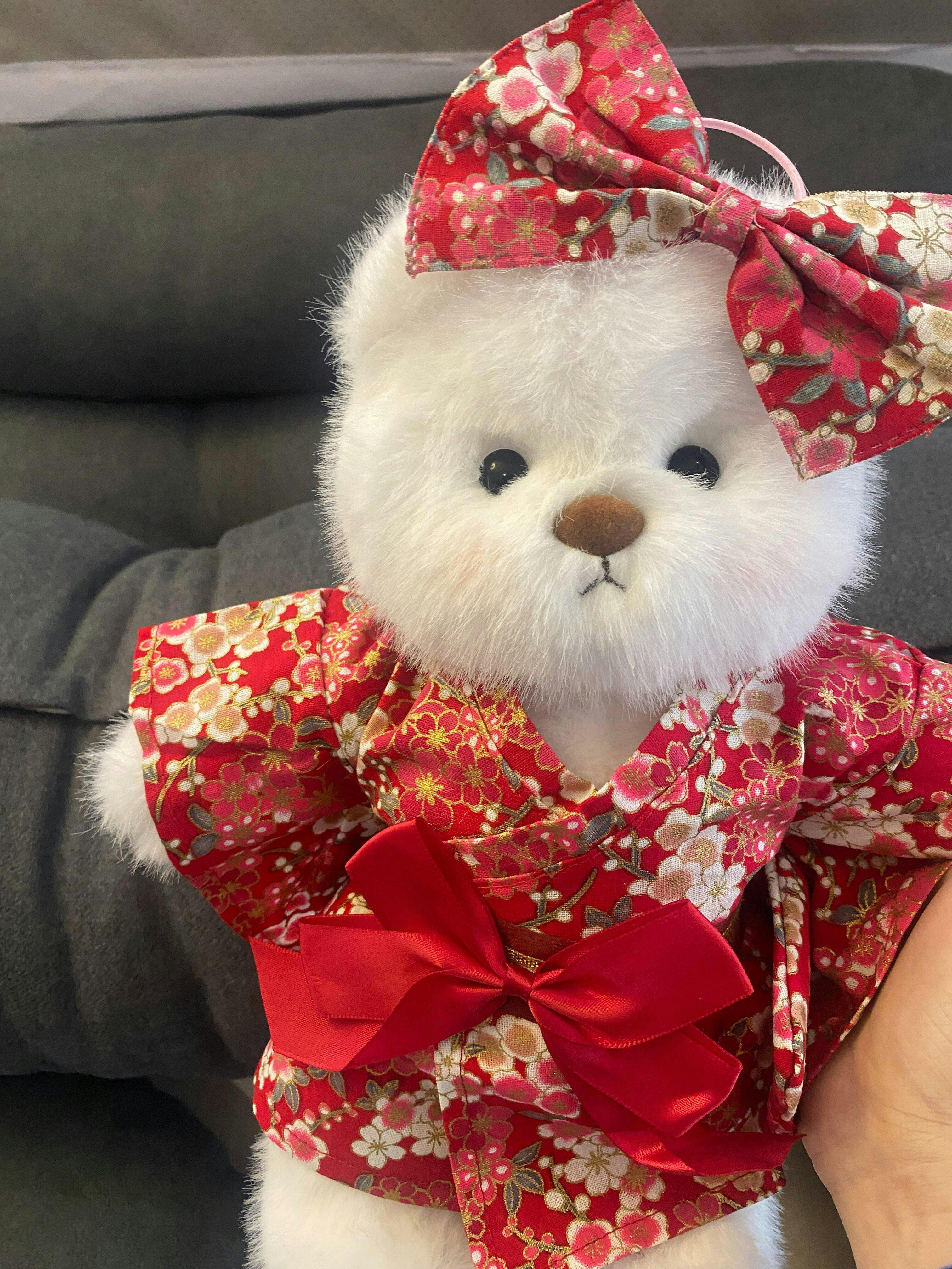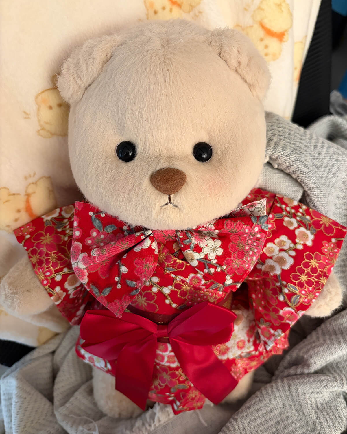 Teddy Bear & Red Kimono Dress- 12 Inches