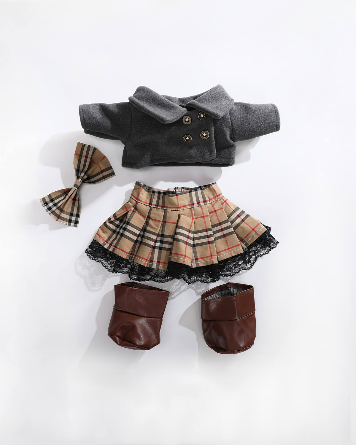 Einzelpreis proEmbody classic British style with this Dark Gray Coat Set for plush bears, featuring a deep gray coat and plaid skirt that exudes timeless elegance. With upgraded details like gold buttons and tailored cuts, this set is perfect for creating a sophisticated look for any occasion.