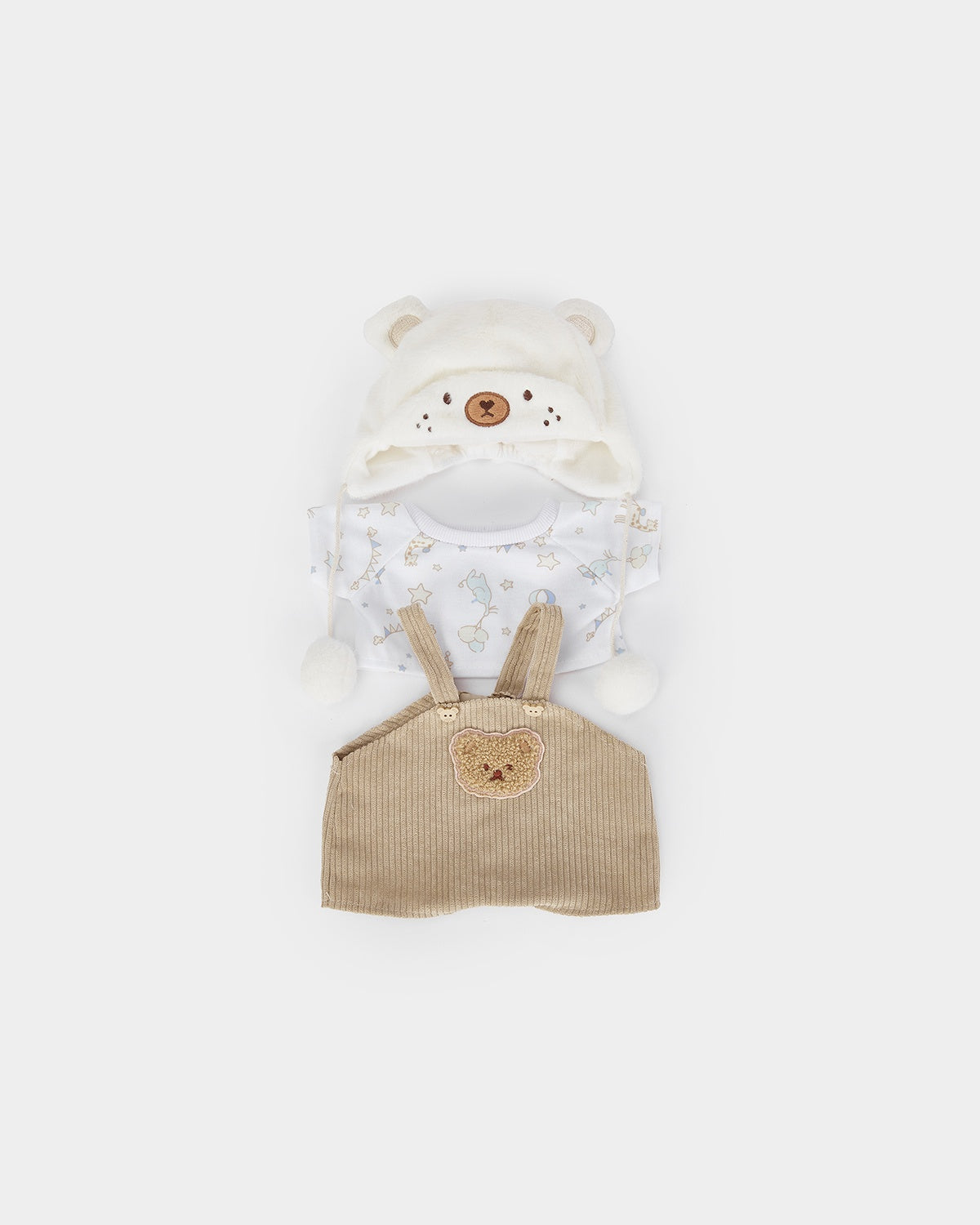 Einzelpreis proOutfit your bear in this soft white fleece set, including a hat, tee, and cute bear overalls. Imagine your bear embarking on snowy adventures, making snow angels and sipping hot cocoa!