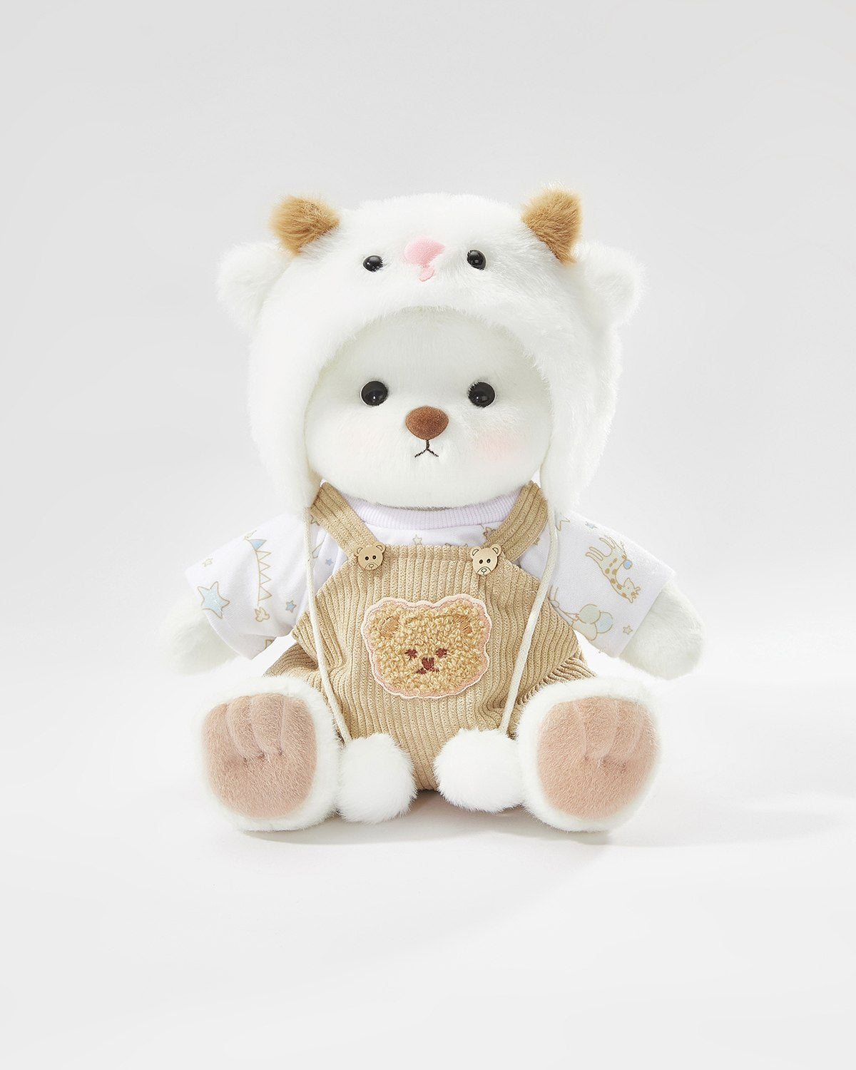 White Short Hair Bear & White Sheep Overalls Set - 12 Inches