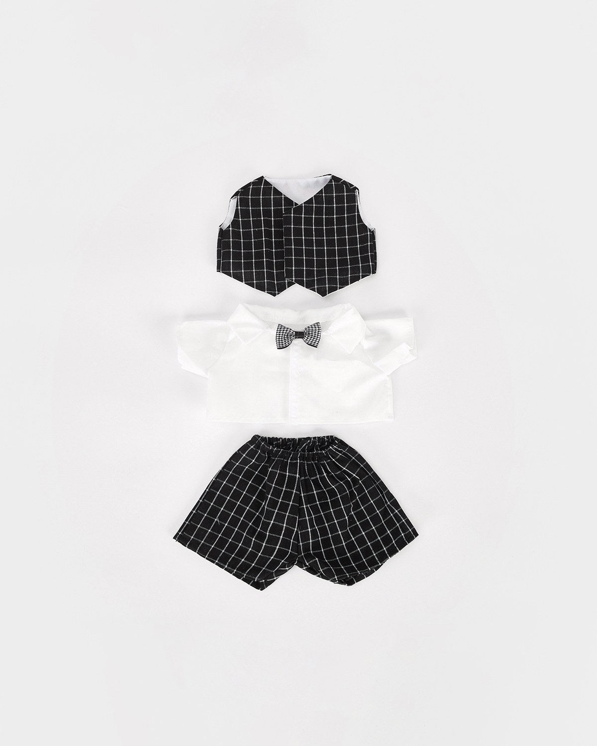 Precio unitario porOur bear will be the star of any event in this stylish three-piece black plaid suit, complete with a shirt and vest! Envision your bear at a formal gathering, charming everyone with its elegance!