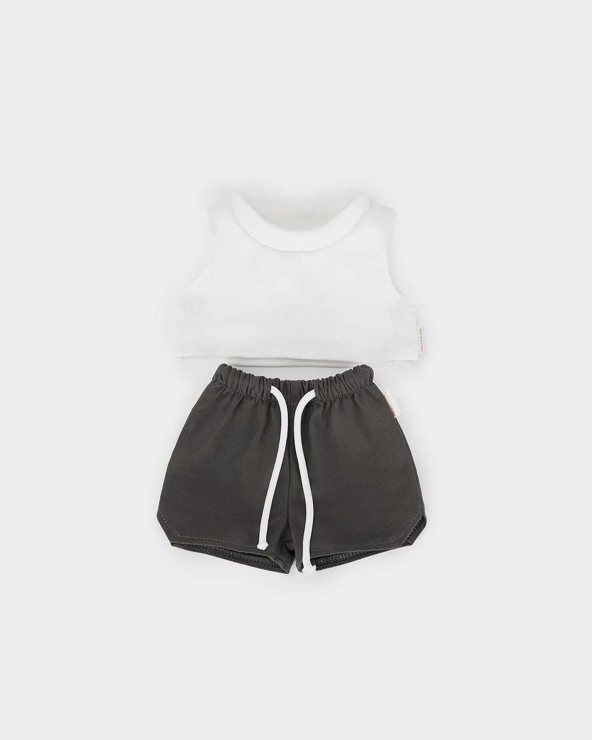 Precio unitario porThis simple two-piece set features a cozy vest and pants, ideal for relaxed days and snuggly cuddles! Imagine your bear lounging at home, enjoying a lazy afternoon with a good book!