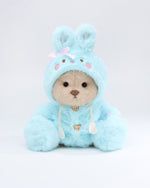 (Easter New In) Milk Tea Long Hair Bear & Blue Plush Bunny Hoodie Dress Set - 12 Inches