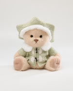 Milk Tea Long Hair Bear & Green Hexagonal Beret Wool Coat Set - 12 Inches