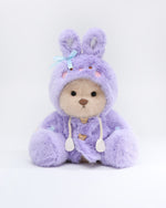 (Easter New In) Milk Tea Long Hair Bear & Purple Plush Bunny Hoodie Dress Set - 12 Inches