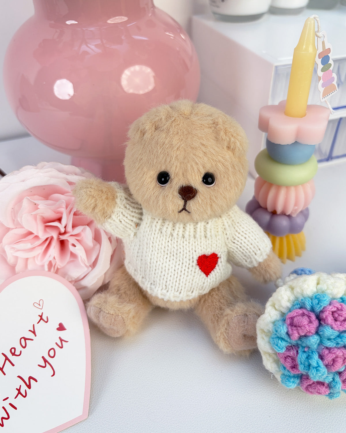 Teddy Bear & White Heart Sweater - 6 Inches
