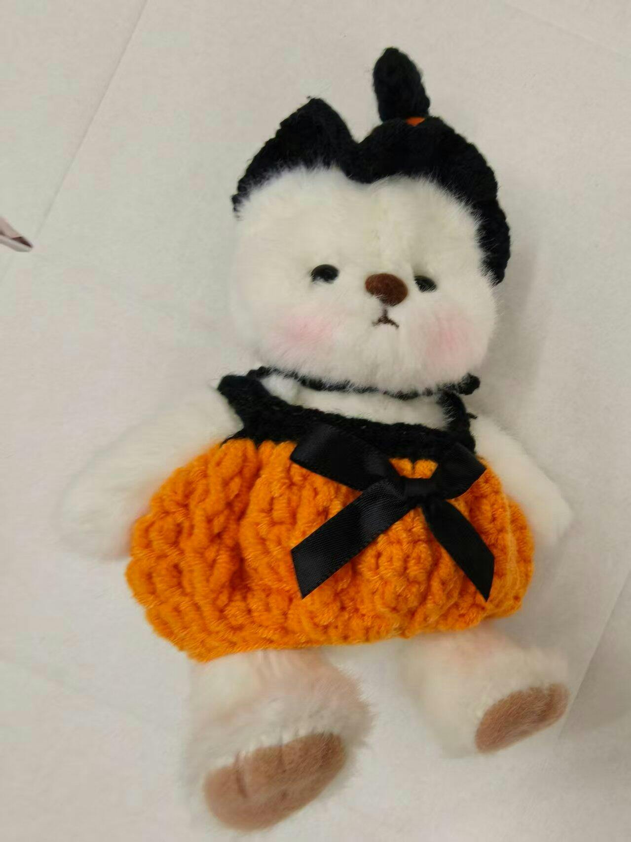 This charming outfit combines a black wizard hat with a pumpkin lantern skirt, designed specifically for plush bears. The layered effect enhances your bear's appeal while providing comfort with its soft fabric, making it a delightful addition to any Halloween collection.