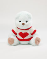 Mint Blue Long Hair Bear & Red-Trimmed White Heart Sweater - 12 Inches