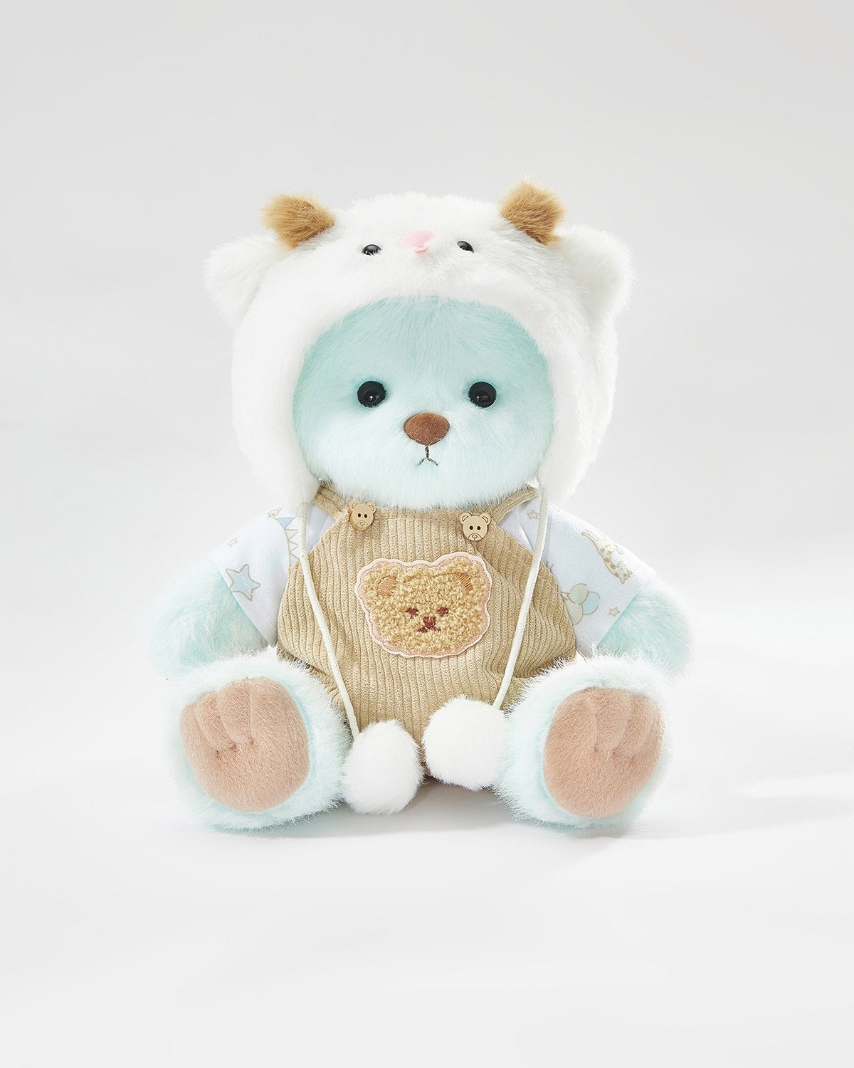 Mint Blue Long Hair Bear & White Sheep Overalls Set - 12 Inches