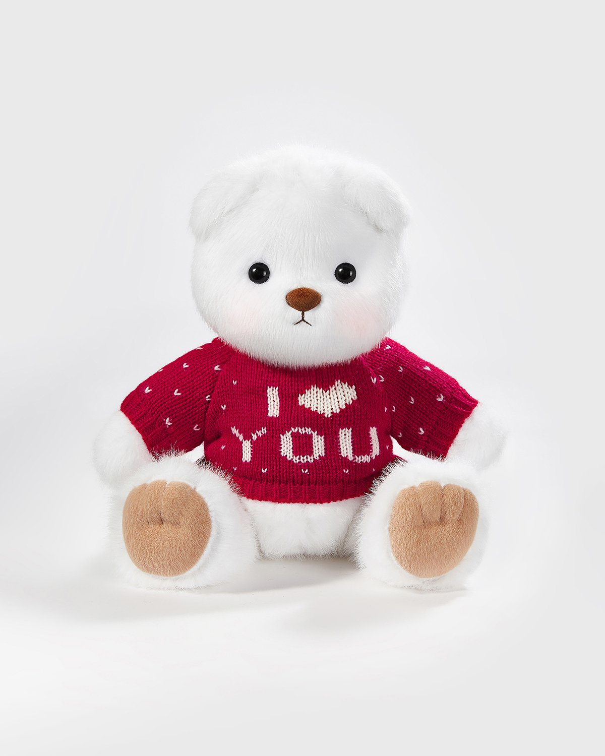 White Long Hair Bear & Red Love Sweater - 12 Inches