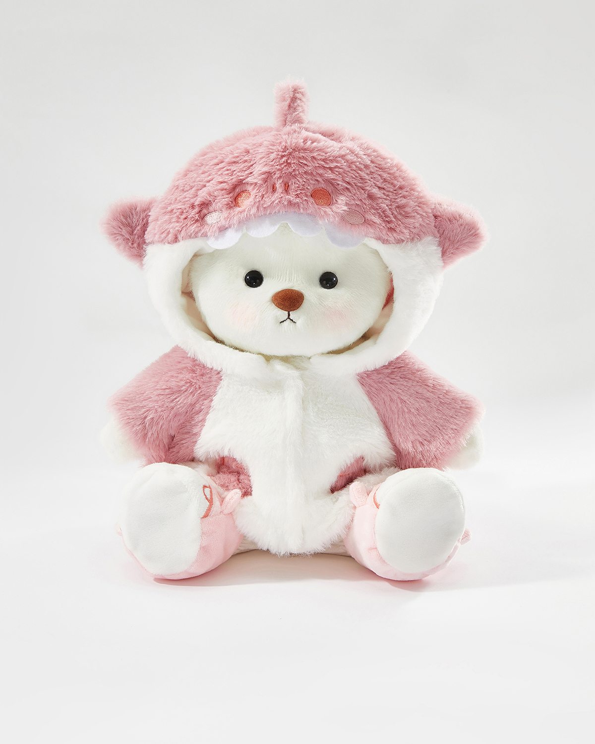 White Short Hair Bear & Pink Shark Set - 12 Inches