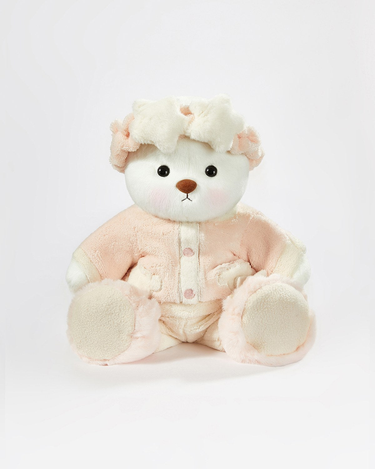 White Short Hair Bear & Pink Winter Pajama - 12 Inches