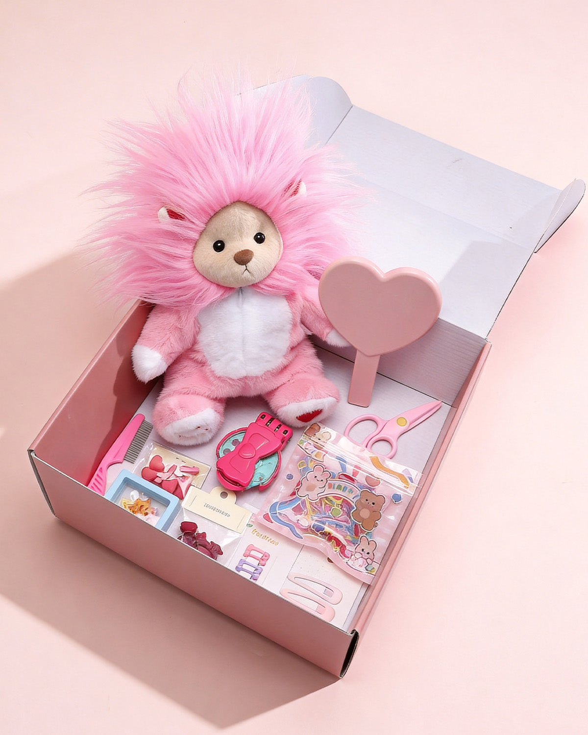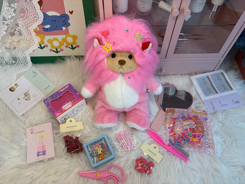 Unit price perA box brimming with endless possibilities! This playful gift set includes an adorable pink lion and a range of accessories that can be mixed and matched however you like. Dress them up any way you want—the fun never stops. With a surprise hidden in every layer, it’s perfect for little stylists with big imaginations.