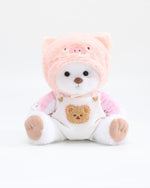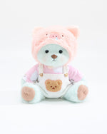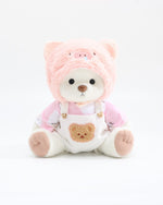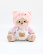 Teddy Bear & Pink Snot Piggy White Overalls Set of 3 - 12 Inches