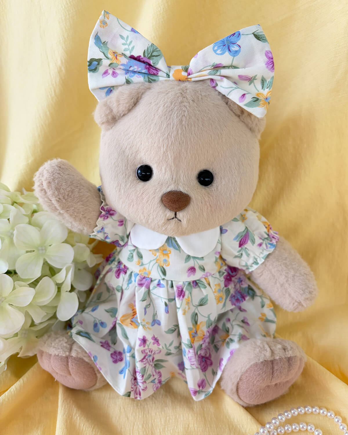Ilbes lill-ors tiegħek b'dan il-libsa sabiħa bil-fjuri u b'pruwa li taqbel magħha, perfetta għall-avventuri tar-rebbiegħa! Immaġina l-ors tiegħek idur f'għalqa xemxija, jiżfen mal-friefet!