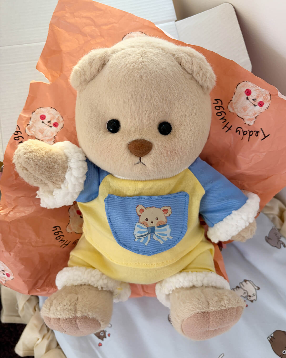 Kull Teddy Huggy huwa aktar minn sempliċi sieħeb tal-felpa—huwa rigal imgeżwer fis-sħana. Magħmulin bl-idejn f'lewn krema u abjad ħelu, l-orsijiet tagħna li tista' tgħannaq jaslu f'kaxxa ta' tifkiriet premium, imqabbla ma' kartolina tal-awguri li tista' tiġi personalizzata biex tikteb l-isbaħ kliem tiegħek. Kemm jekk tkun sorpriża ta' għeluq sninek, ġest ta' "sempliċement għax", jew teżor tal-vaganzi, Teddy Huggy jittrasforma l-mumenti f'memorji.