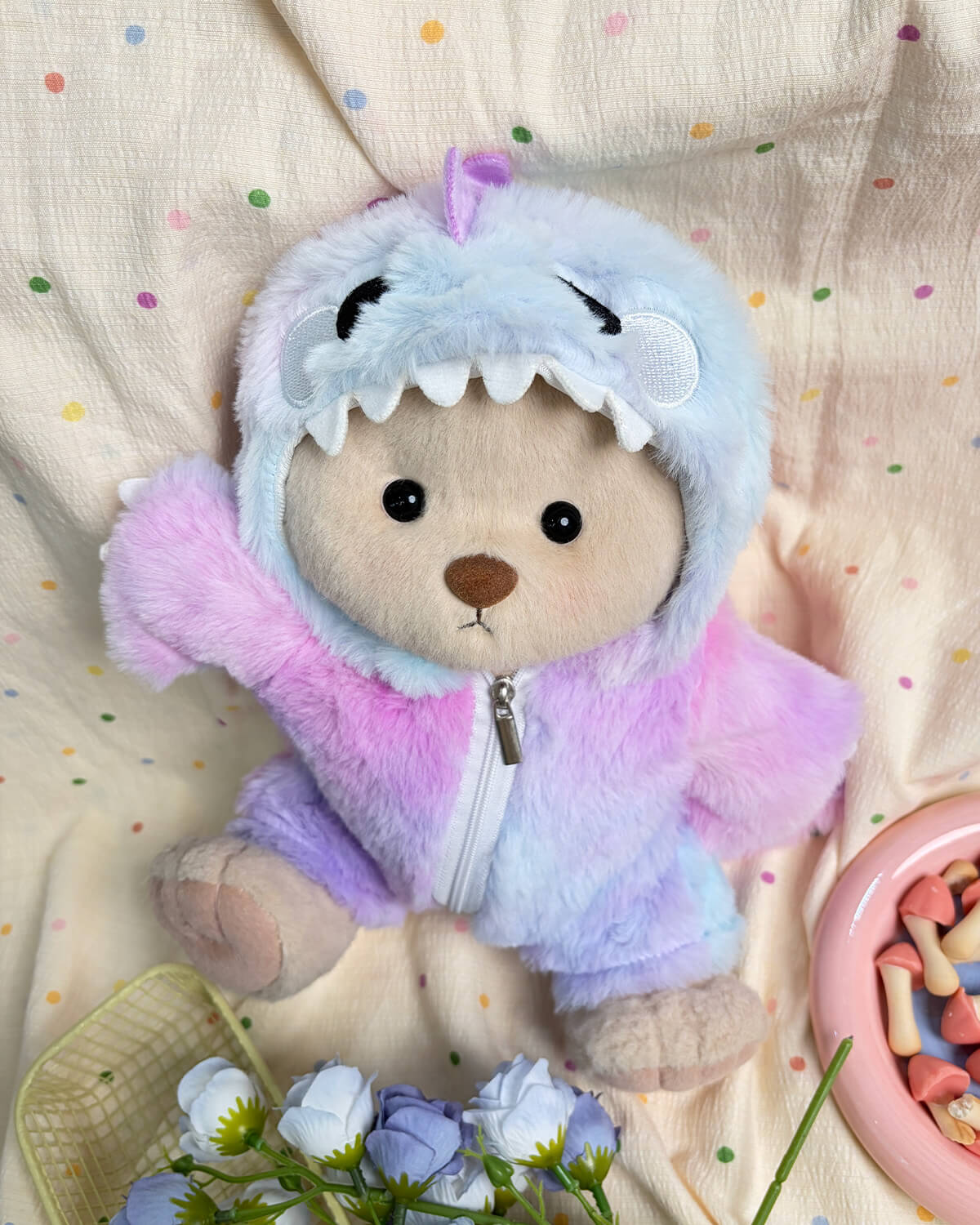 B'firxa impressjonanti ta' sfumaturi tal-qawsalla, dawn il-ħwejjeġ rotob iġibu twist umoristiku lid-disinji klassiċi tad-dinosawri. Perfetti għal-logħob immaġinattiv, jiżguraw li l-ors tiegħek mhux biss ikun adorabbli iżda wkoll lest għal avventuri kkuluriti!