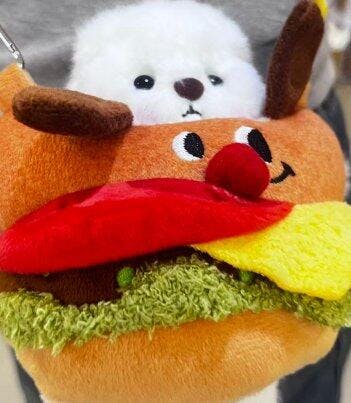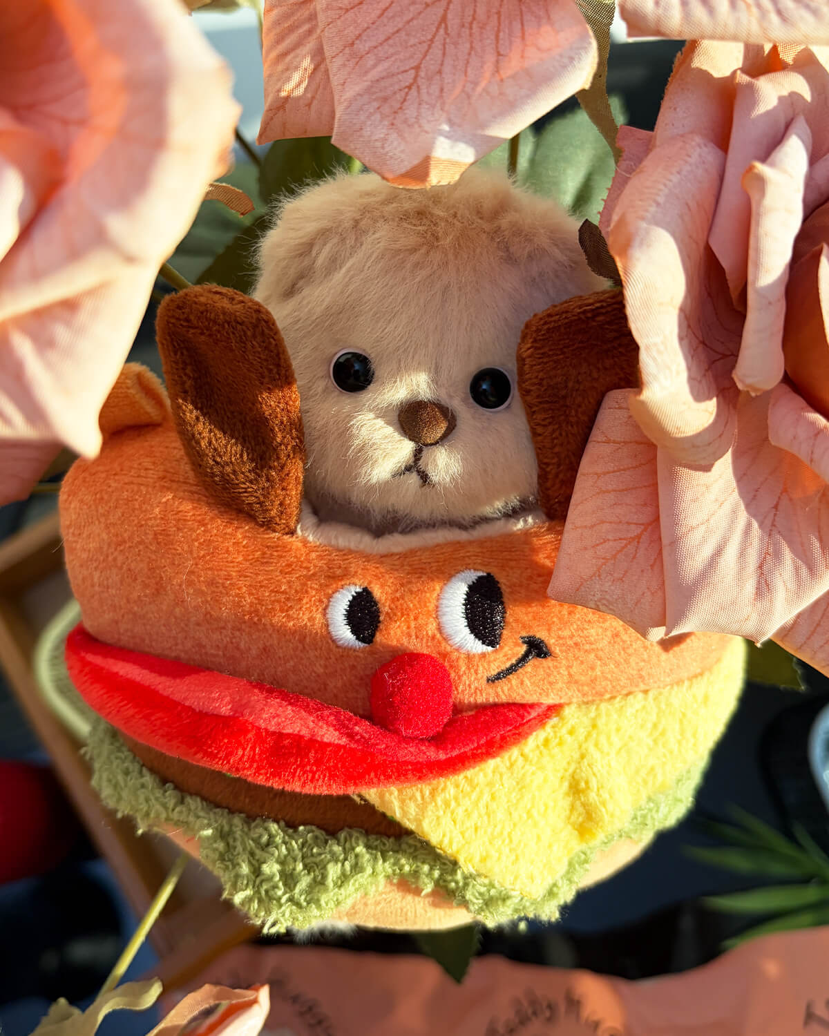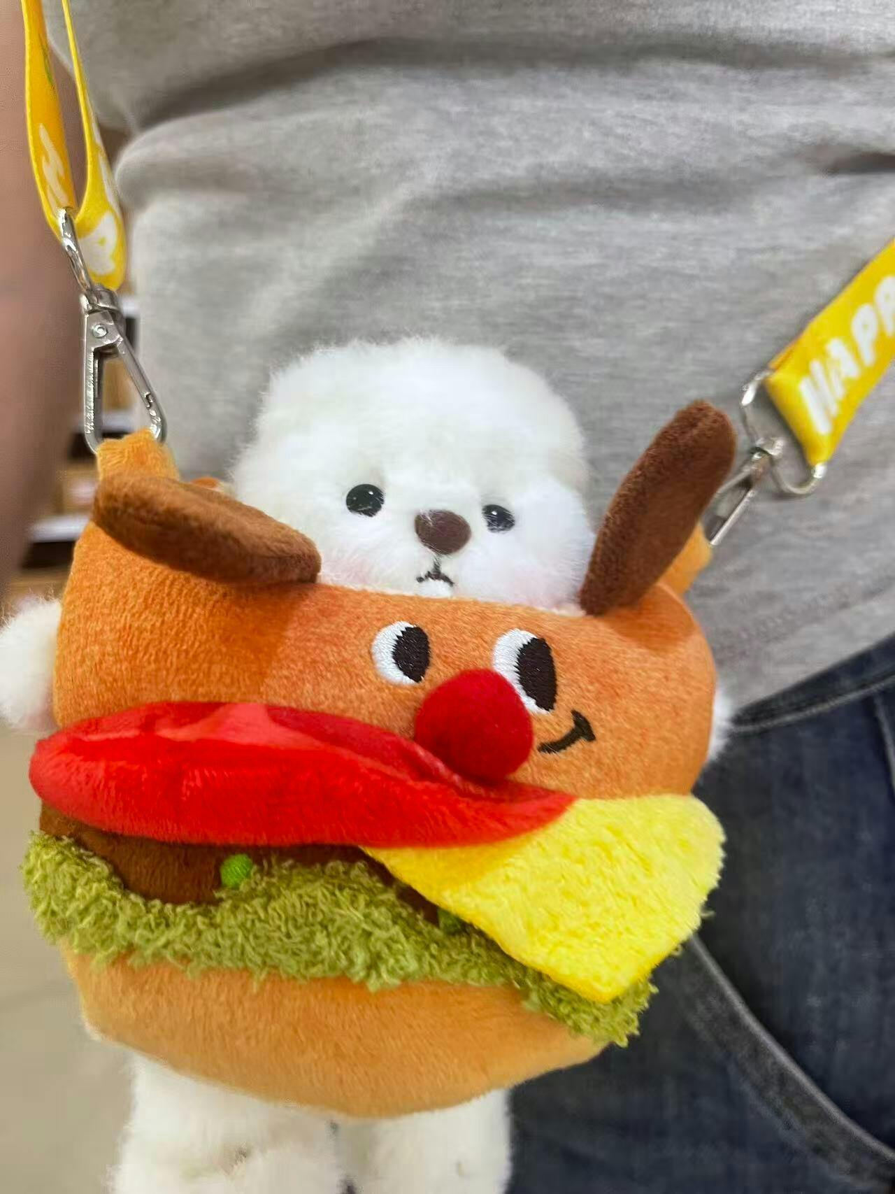 Transform your plush into a food-themed cutie with our Hamburger Bag outfit! This creative design turns your toy into a "foodie" with a charming bear face and hamburger details. The realistic stitching of tomatoes, cheese, and lettuce makes it look delicious, while the adjustable yellow strap ensures it's perfect for outings!
