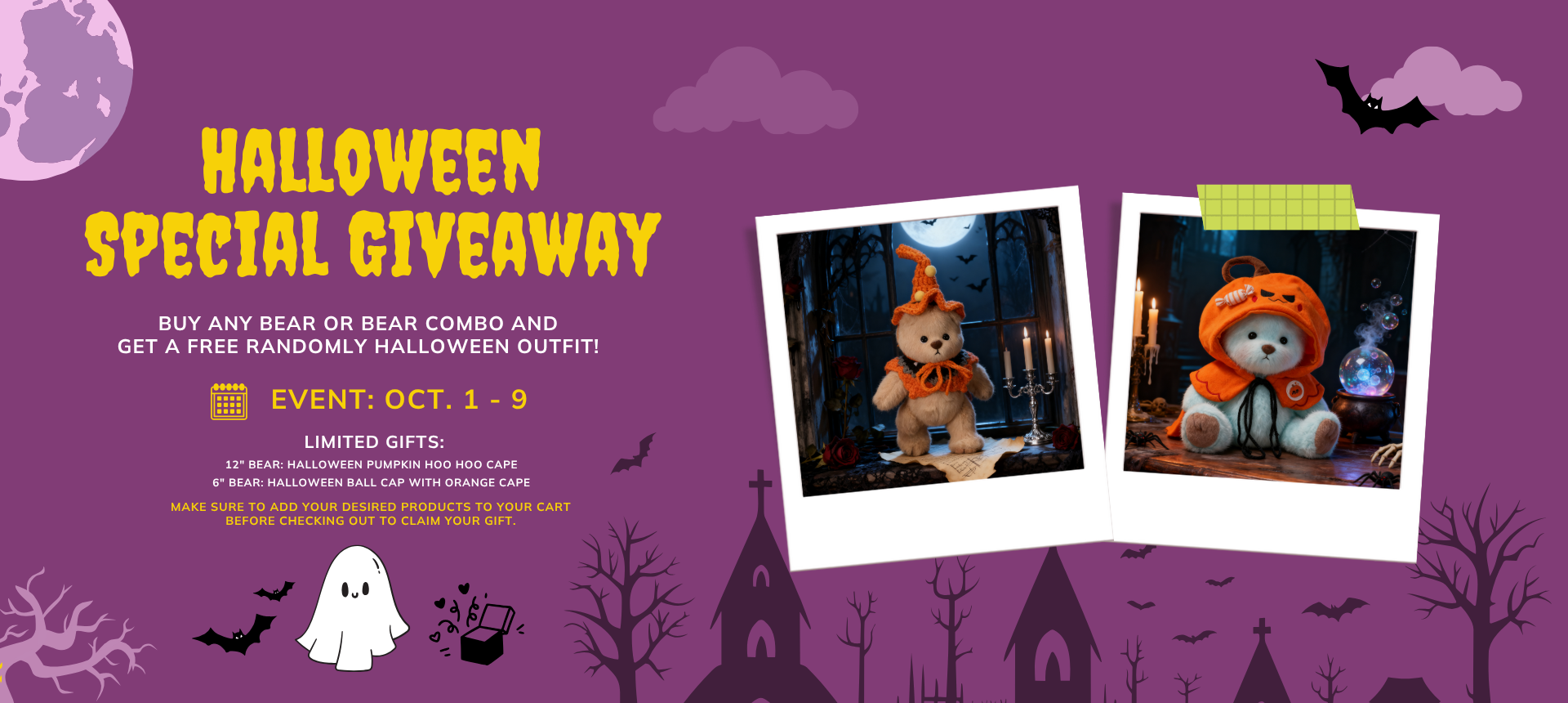 Buy any bear or bear outfit combo and get a free Halloween outfit!