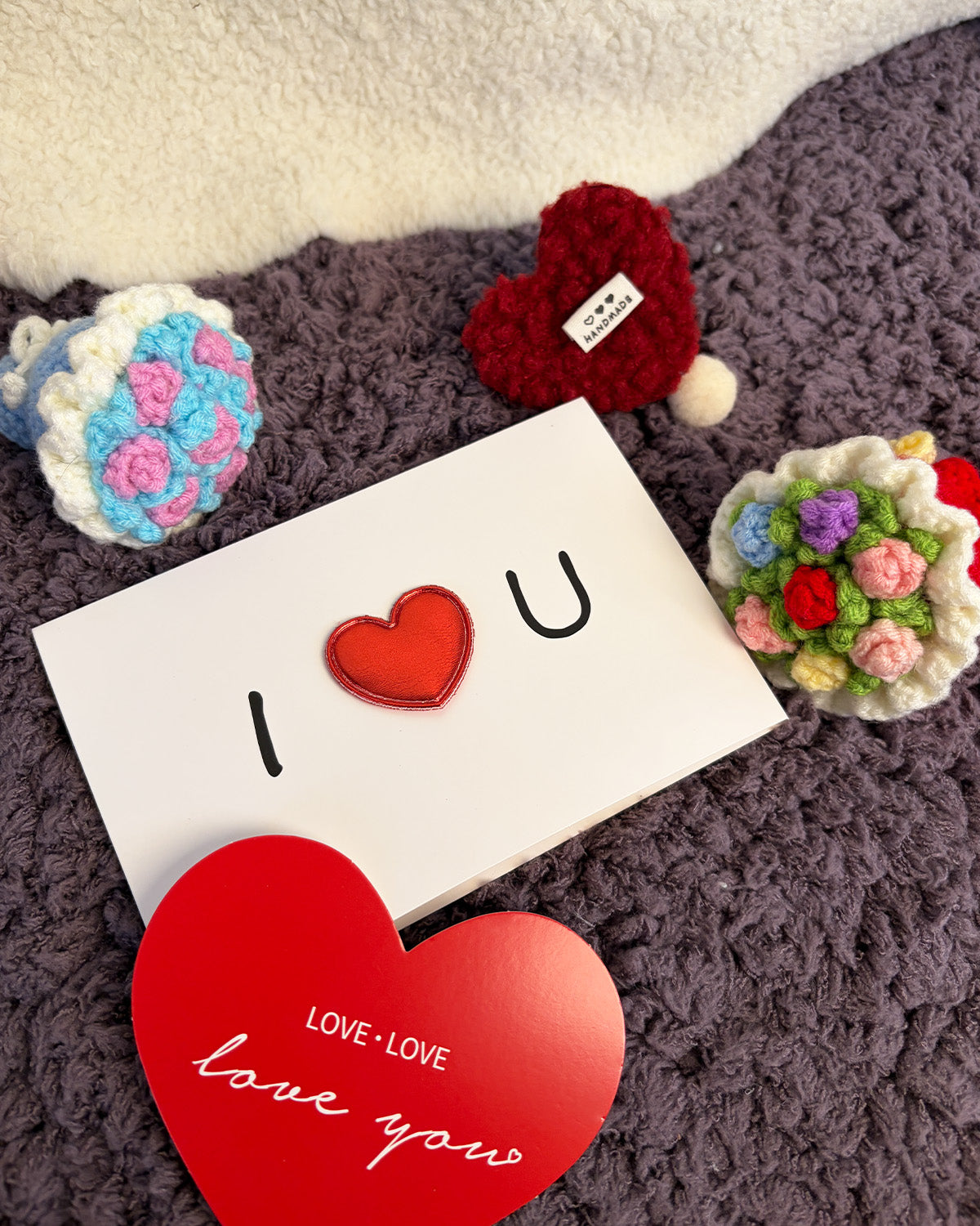 - 1 * Red Mini Multi-Colored Knitted Bouquet