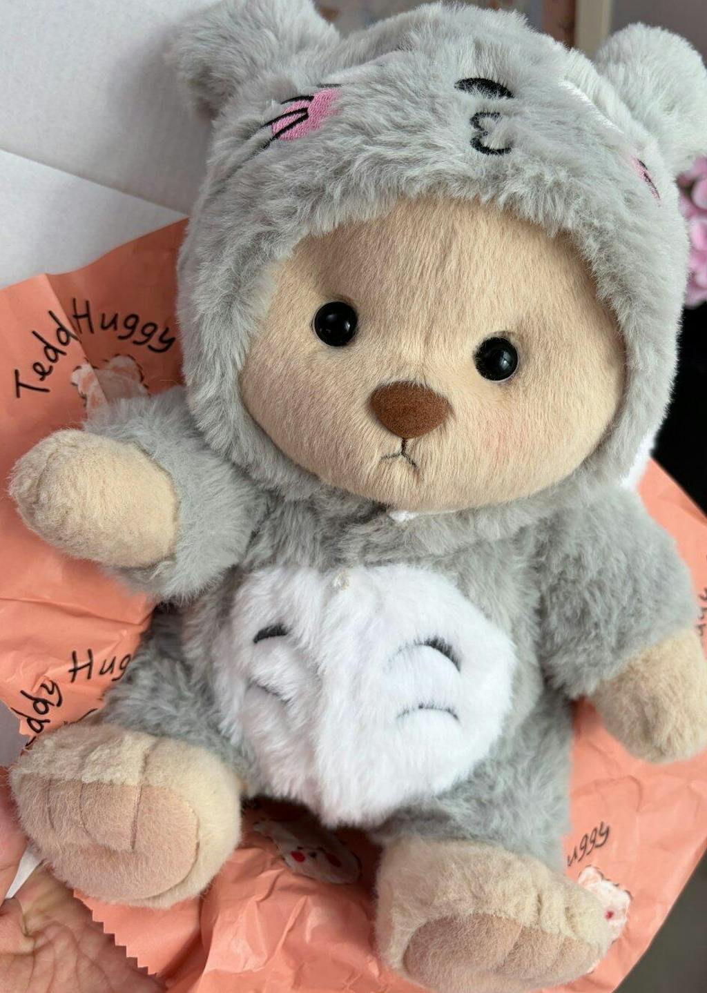 Wrap your bear in this soft gray Totoro onesie, perfect for snuggles and imaginative adventures. Envision your bear nestled in a cozy nook, sharing stories with woodland friends!