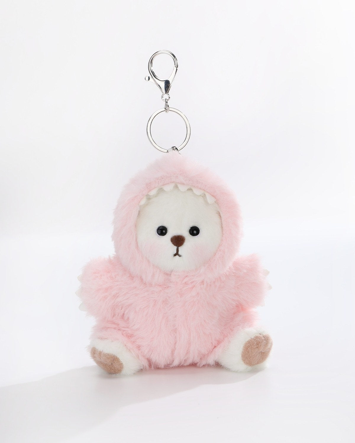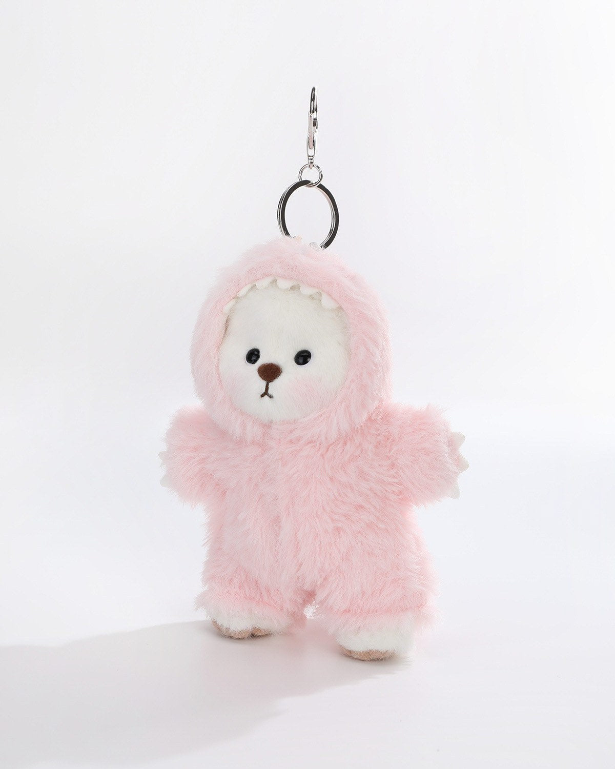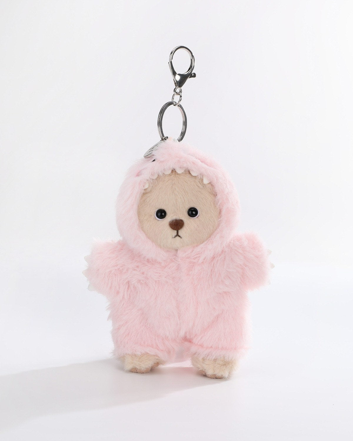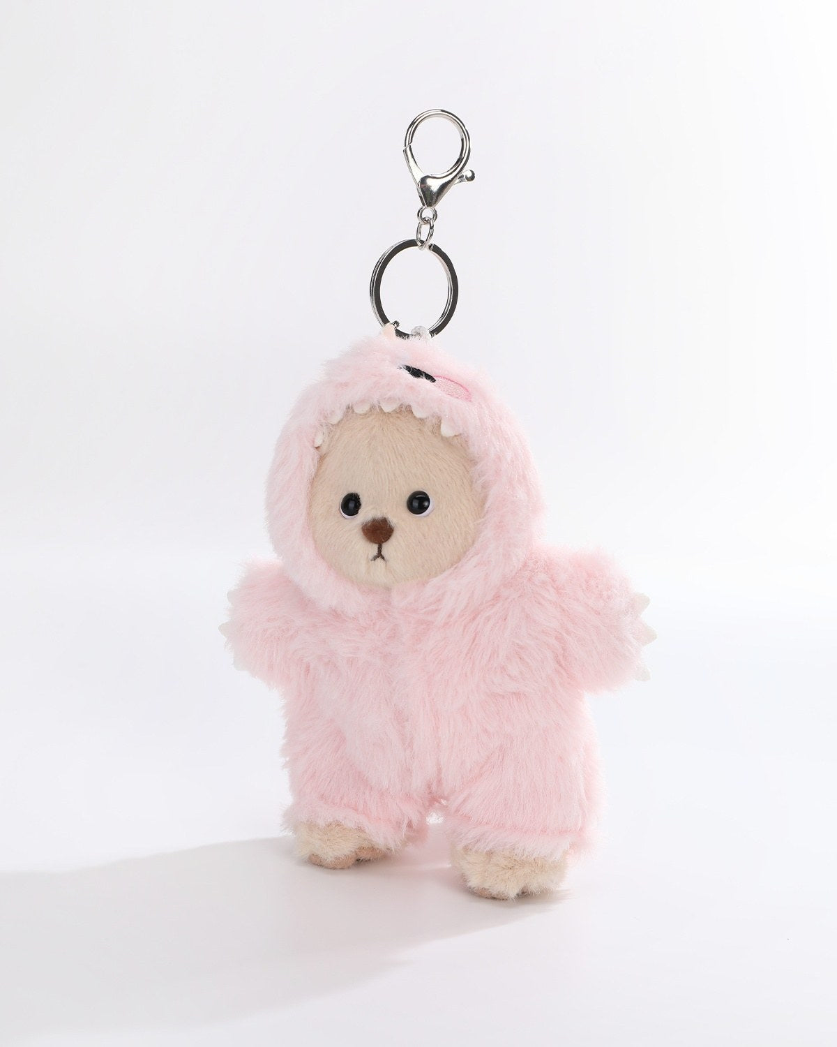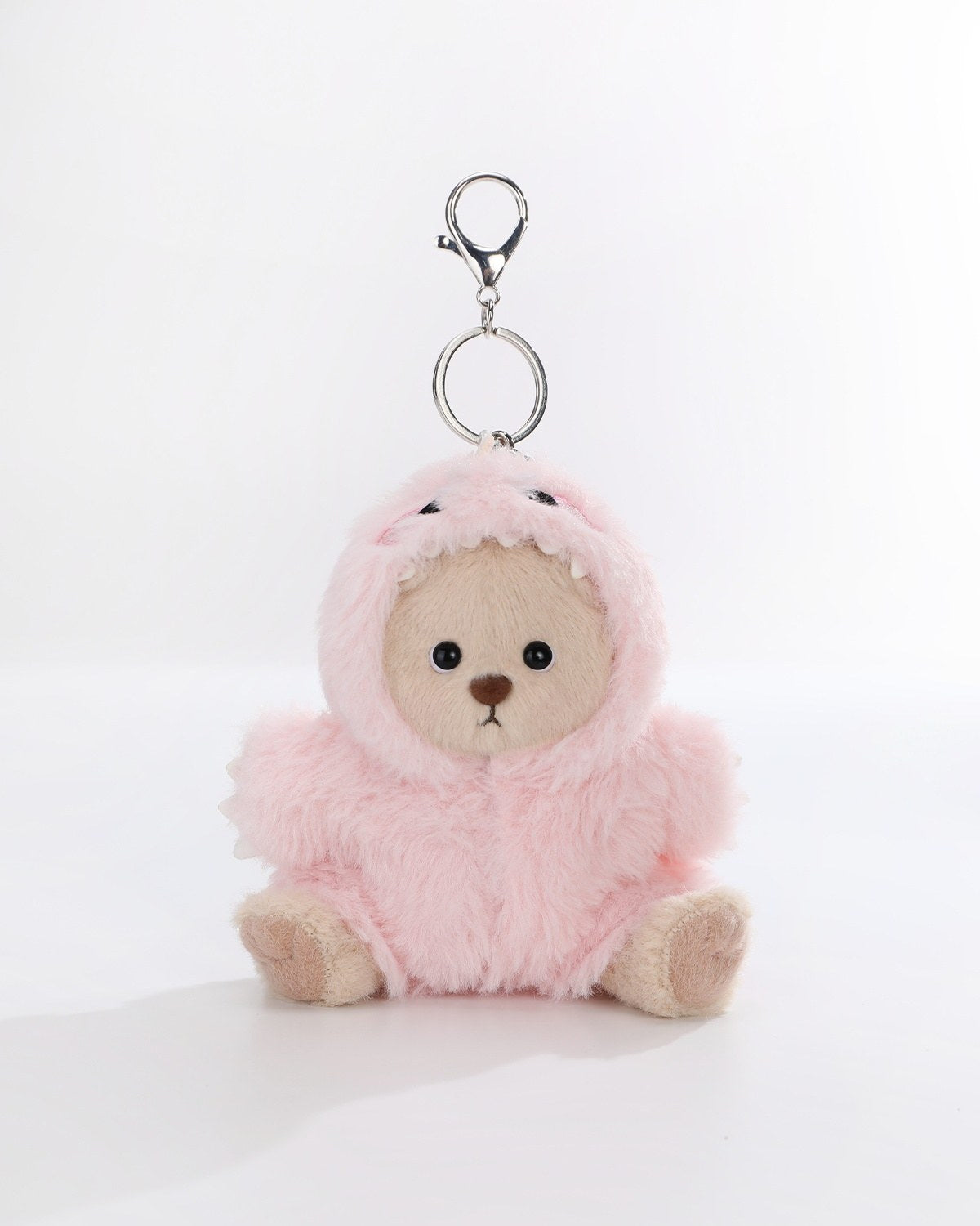 Transform your mini Teddy Bear with our adorable Dinosaur Jumpsuit! Made from soft fabric, this colorful outfit features a special keychain loop, allowing you to carry your bear as a cute keychain. Perfect for playtime and on-the-go cuddles!